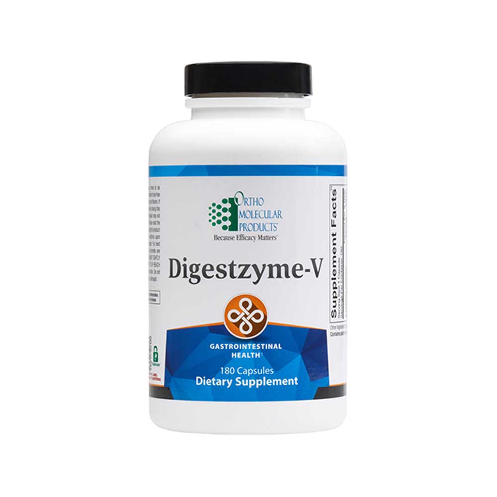 Digestive enzymes have a long history of use for those who need digestive enzyme support. In the past, animal enzymes were preferred to vegetable enzymes for their protein digesting strength though they required a narrower pH window of 6.5-7.5 in order to be activated. Digestzyme-V utilizes new, plant- based enzymes which function within a broader pH range of 2.5-8.5, and still offer the digestive strength of animal-based enzymes. This broad pH window of activity makes it especially helpful for individuals with lower gastric acid levels or inconsistent pH’s. Each enzyme has been tested in pH, temperature, and gastric survivability studies to ensure enzyme activity. In addition, Digestzyme-V also includes DPP4, one of the primary components of peptidase, which has been shown to digest and neutralize gluten. This action may help to support gluten-sensitive individuals who ingest it inadvertently. The blend of proteases in Digestzyme-V is also effective in breaking down proteins from soy, whey, and casein from milk products. Lipases for fat breakdown as well as amylases for carbohydrate breakdown are also included for full- spectrum digestive support.
